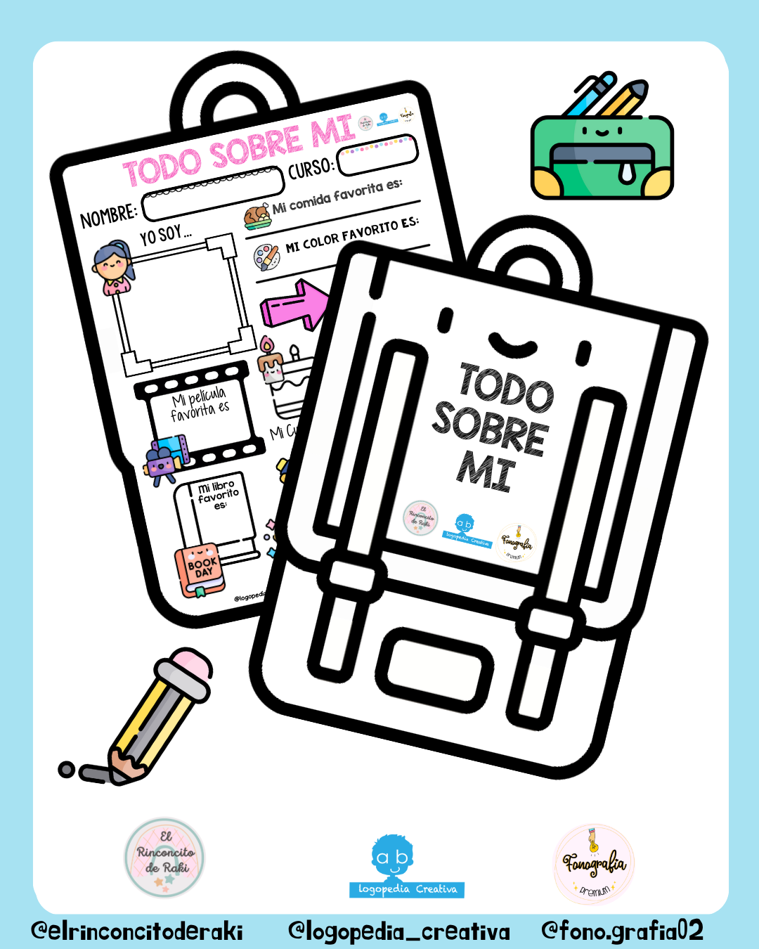 Incluye fichas listas para que los niños completen con sus datos personales, gustos, intereses y características únicas.